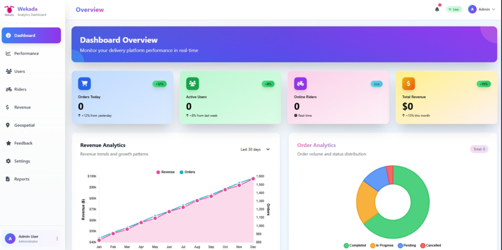 Web-based Motor-Taxi Application developed for monitoring rides requests, Orders, Deliveries, and Revenue in real-time